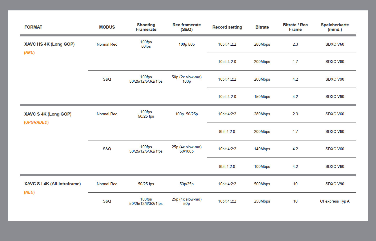 Mann kann mit den V90 SDXC Karten alles aufnehmen, außer I-Codecs, also kein XAVX-I. Siehe Chart.